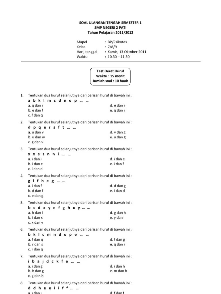 Belajar Tes Deret Huruf Bag 1 Tes Cpns Polisi Ipdn Youtube from i.ytimg.com Kata yang berawalan huruf a termasuk dalam kategori…. A, b, c, atau d sebagai pilihan jawaban anda. Contoh soal tes psikotes deret angka ini akan kami bagi dalam 2 bagian. Susunan angka mulai dari yang pertama dan selanjutnya ditambah 2. Angka hilang huruf hilang dan simbol hilang. Psikotes online layanan tes psikologi gratis untuk kita semua temukan berbagai simulasi tes psikotes online gratis untuk kebutuhan asesmen diri, tingkat inteligensi, kepribadian, dan kebutuhan tes penilaian kerja. Tes ini memberikan tantangan tersendiri bagi mereka yang akan ujian. Psikotes bisa disebut juga sebagai tes psikologi yang memiliki beberapa definisi.