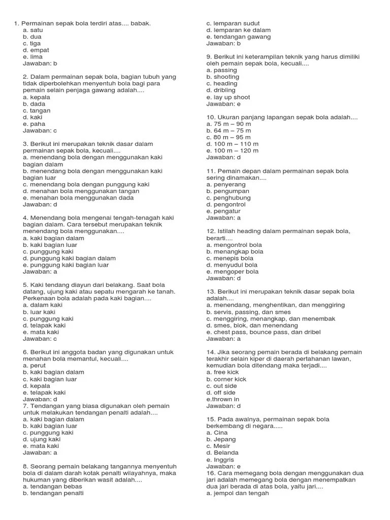 Berikut ini merupakan teknik dasar dalam permainan sepak bola kecuali. Oleh fungsidiposting pada 23 juni . Berikut ini anggota badan yang digunakan untuk menahan bola memantul, kecuali. Berikut ini merupakan teknik dasar dalam permainan sepak bola, kecuali…. Menendang bola dengan menggunakan kaki bagian dalam.